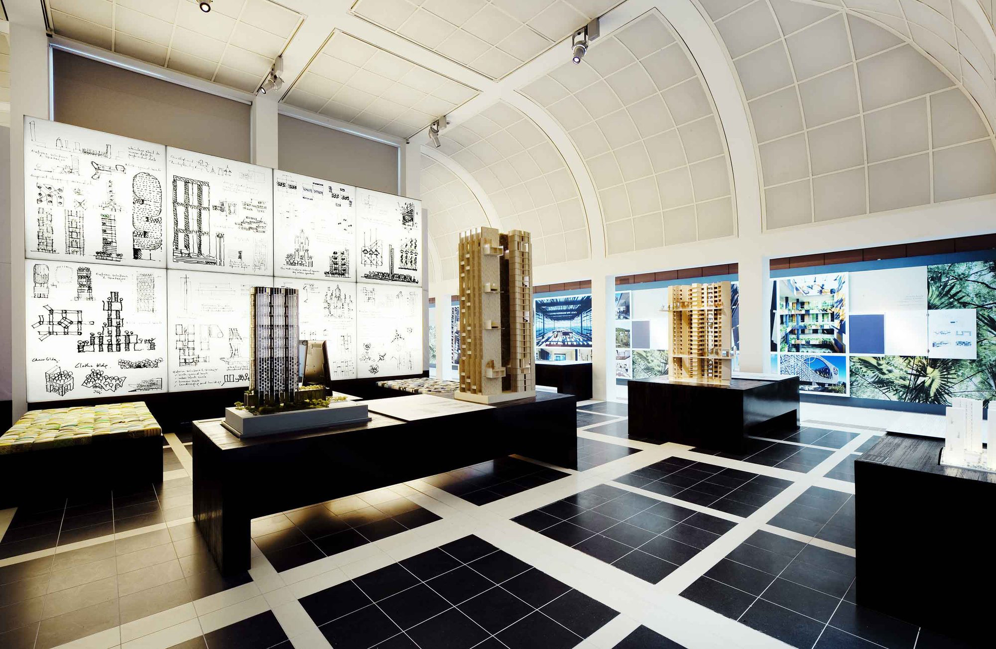 Under the cube there are withdrawable soft modules, and inside the cube there is a live tree that is illuminated from the above roof window. This is a place for solitude, meditation and relaxation. Thus, with the help of withdrawable modules, you can create different zones for conversations, board games, and the one who needs to retire can go and have a rest under the tree. Also, we do not forget about a place for storing clothes. There is a cabinet along one of the many-many walls.